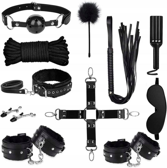 Na start świetnie sprawdzą się klasyczne zestawy dla par, jak np. zestaw BDSM 10 elementów w walizce – czarno-złoty. Znajdziesz tam wszystko, czego potrzebujesz: opaski na oczy, knebel, pejcz, kajdanki – idealne do wspólnych eksperymentów z uległością i dominacją.
